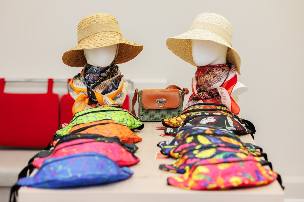 В продаже женские и мужские головные уборы, аксессуары такие как шарфы, платки, палантины, перчатки.